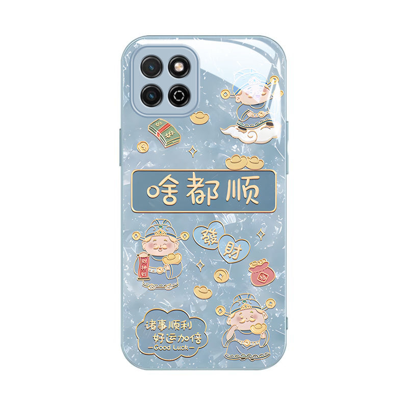 适用华为荣耀畅玩20手机壳玻璃koz-al00啥都顺honor畅完20a保护套aloo全包边防摔新年款喜庆财神文字高级女生