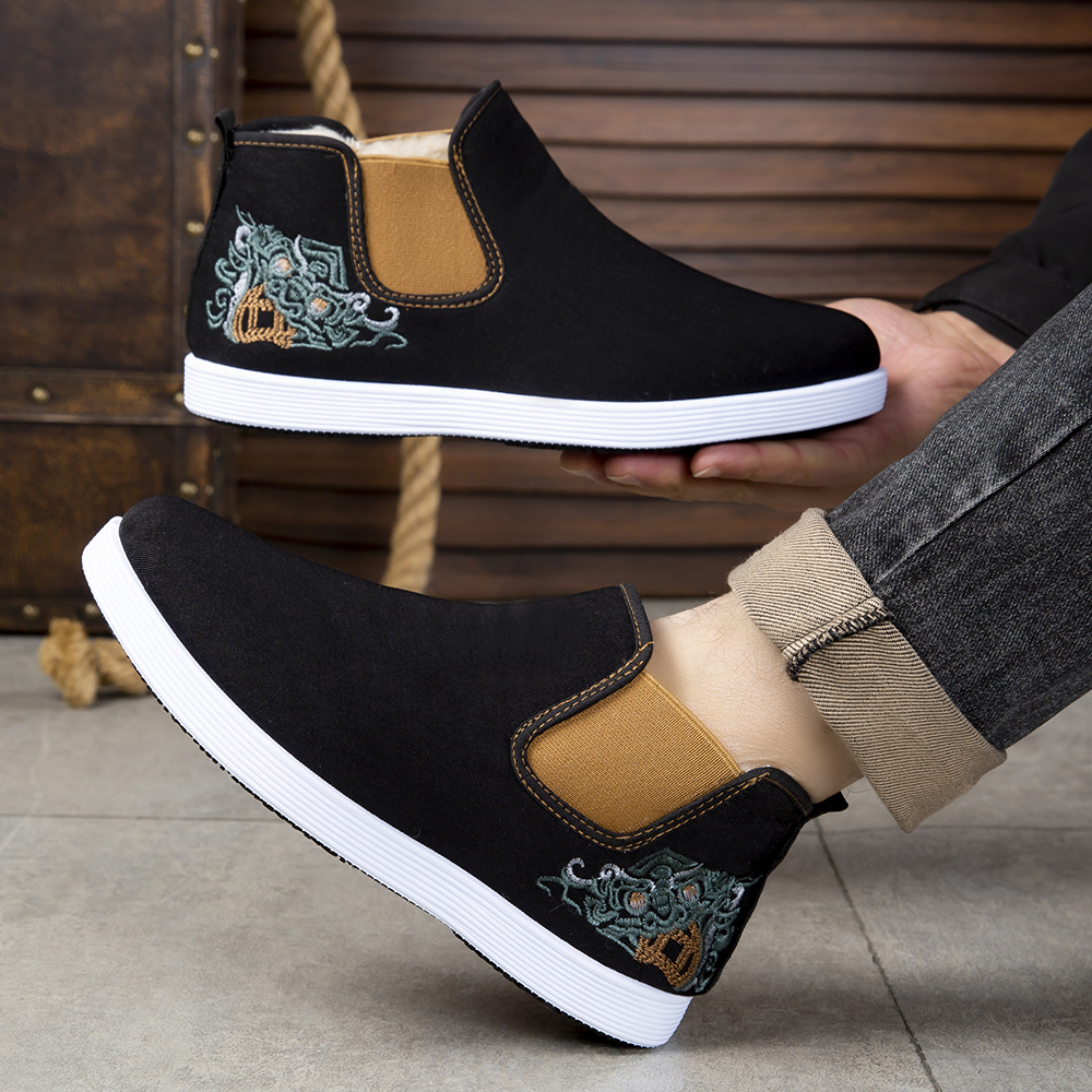 男鞋冬季高帮棉鞋布鞋中老年一脚蹬加绒防滑保暖北京爸爸百搭棉鞋