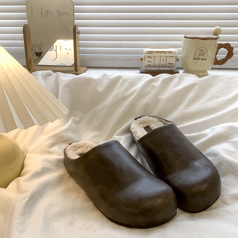 防水包头半拖鞋女秋冬外穿2025新款加绒百搭一脚蹬厚底勃肯棉拖鞋