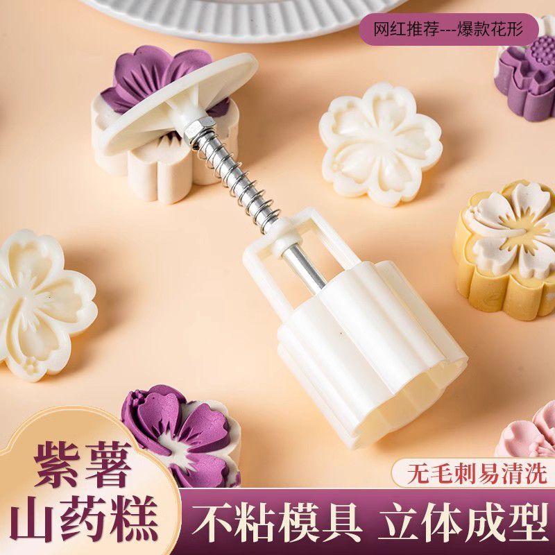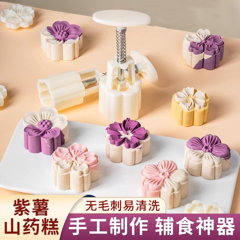 月饼模具新款绿豆糕点心辅食按压山药糕花烘焙手压式家用造型磨具