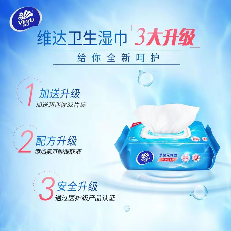维达除菌湿巾80/320片温和无香除菌湿巾家庭装便携式成人湿纸巾