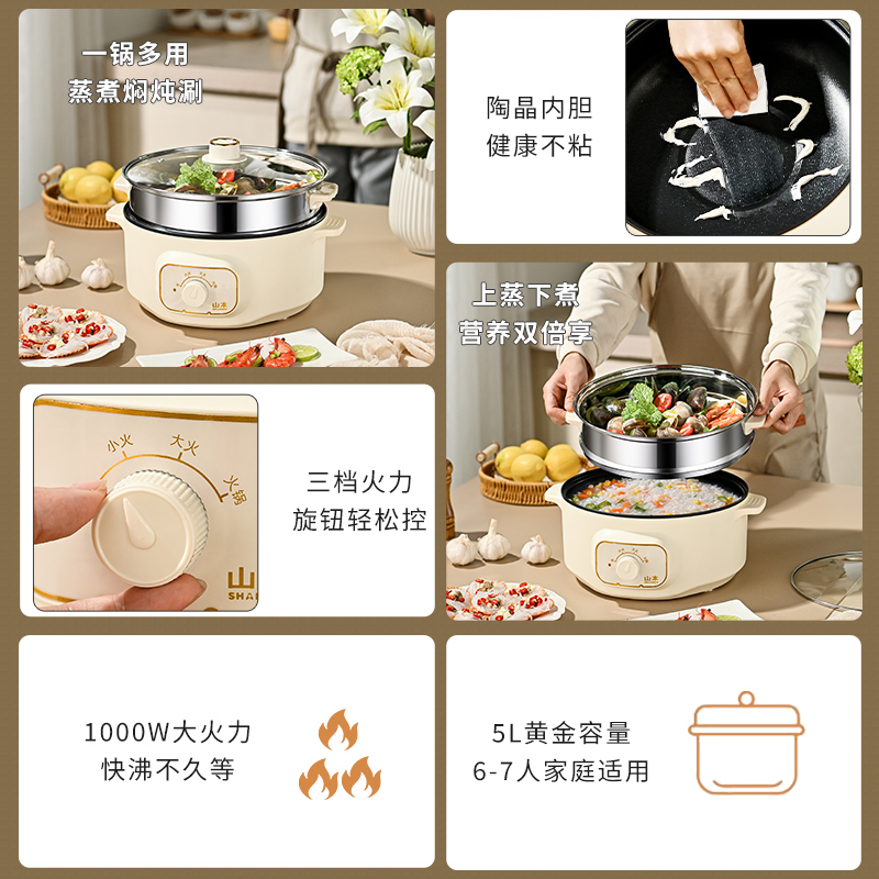 山本电煮锅宿舍多功能小电锅小型泡面锅家用单人学生锅电热火锅
