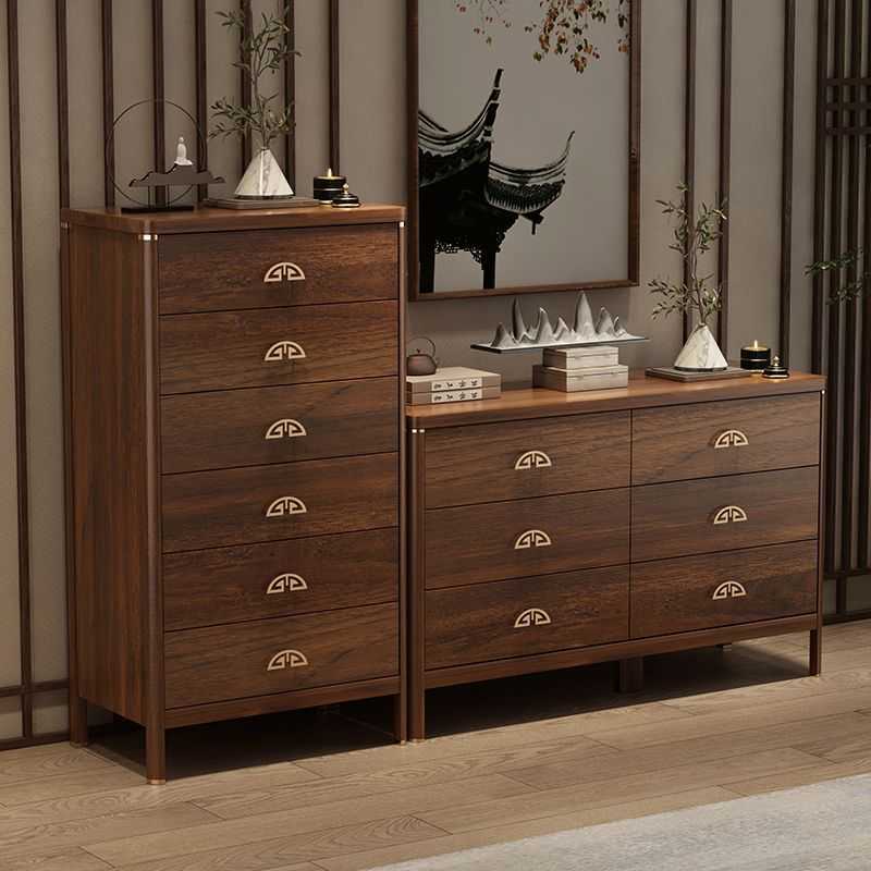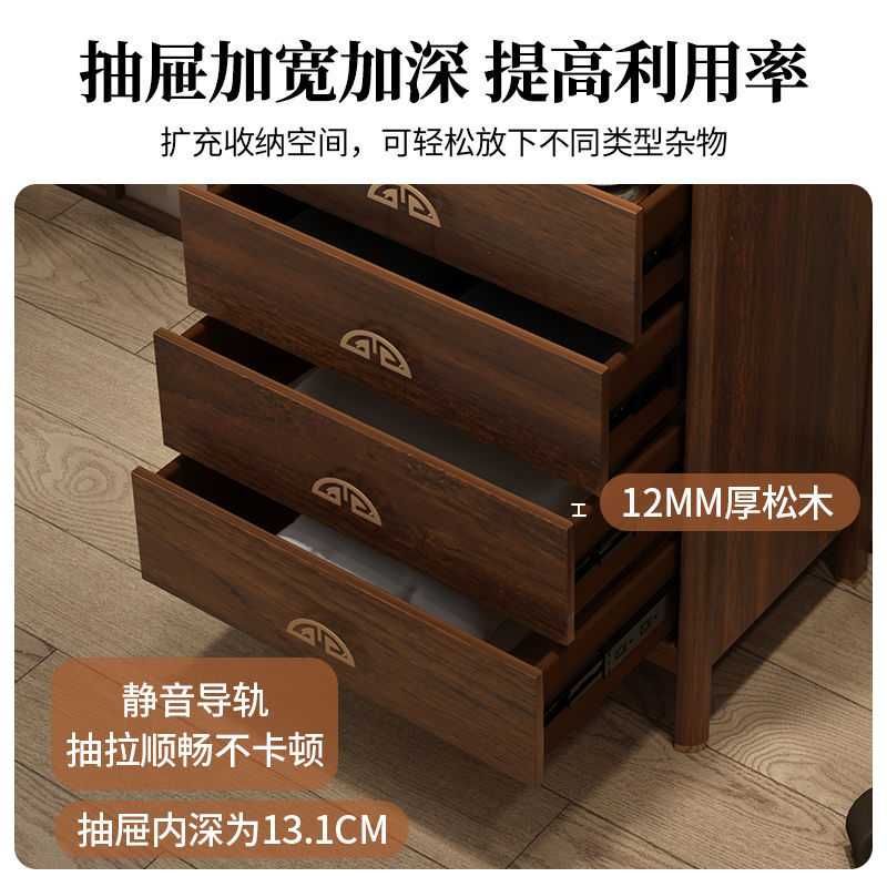 新中式卧室斗柜收纳柜客厅靠墙储物柜实木色床尾柜抽屉八斗橱柜子