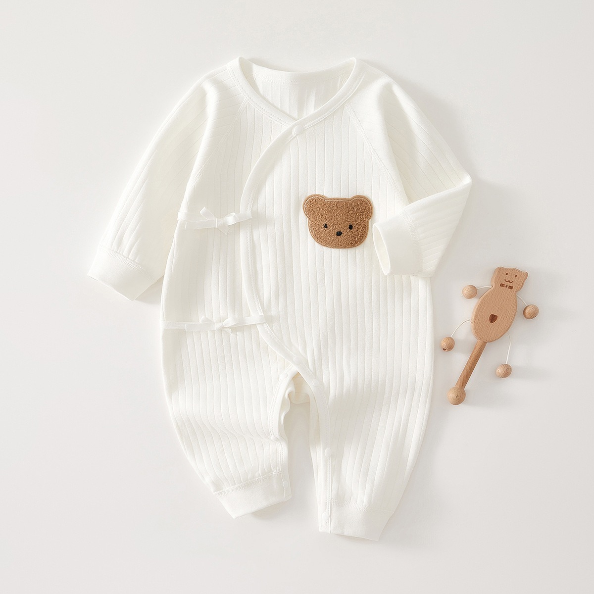婧麒早秋婴儿衣服纯棉新生儿偏襟连体衣宝宝哈衣初生儿长袖爬爬服
