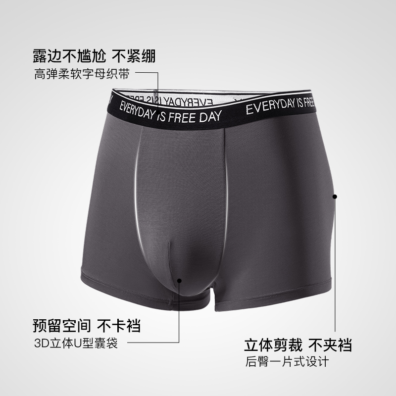 蕉下男士莫代尔内裤透气短裤不卡裆运动抗菌平角裤防夹臀四角内裤