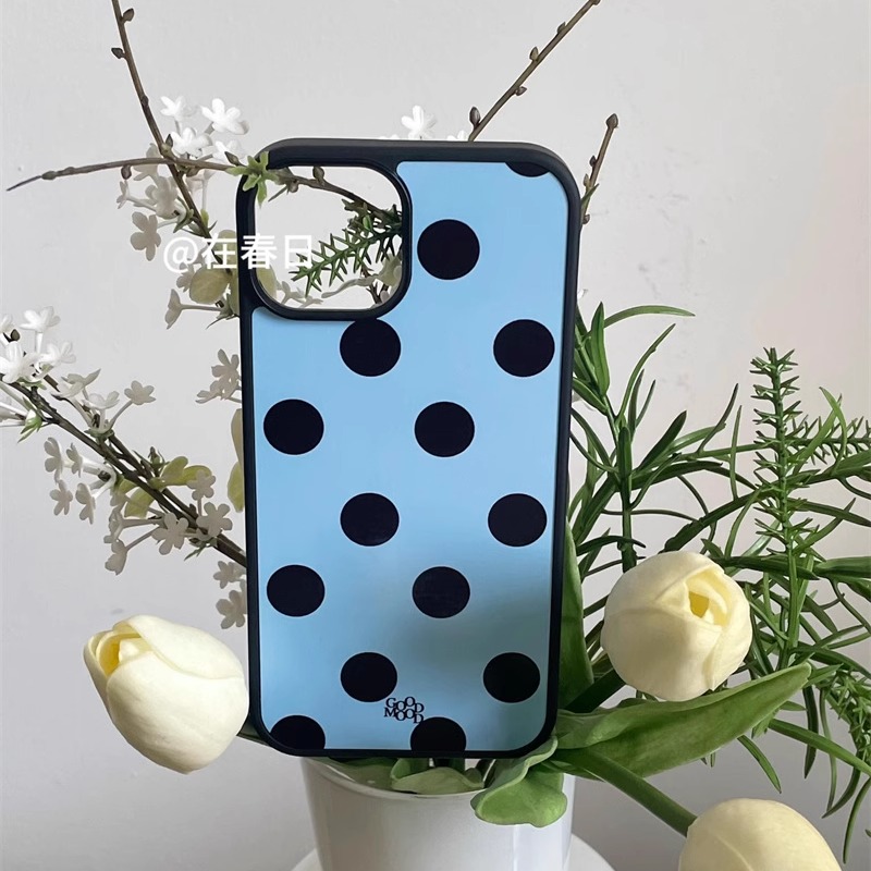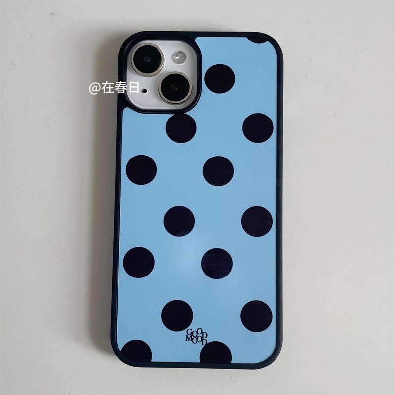 在春日明星赵露思同款蓝波点手机壳适用于苹果17promax/14新款iPhone15pro女15保护壳16promax/16黑边壳xsmax
