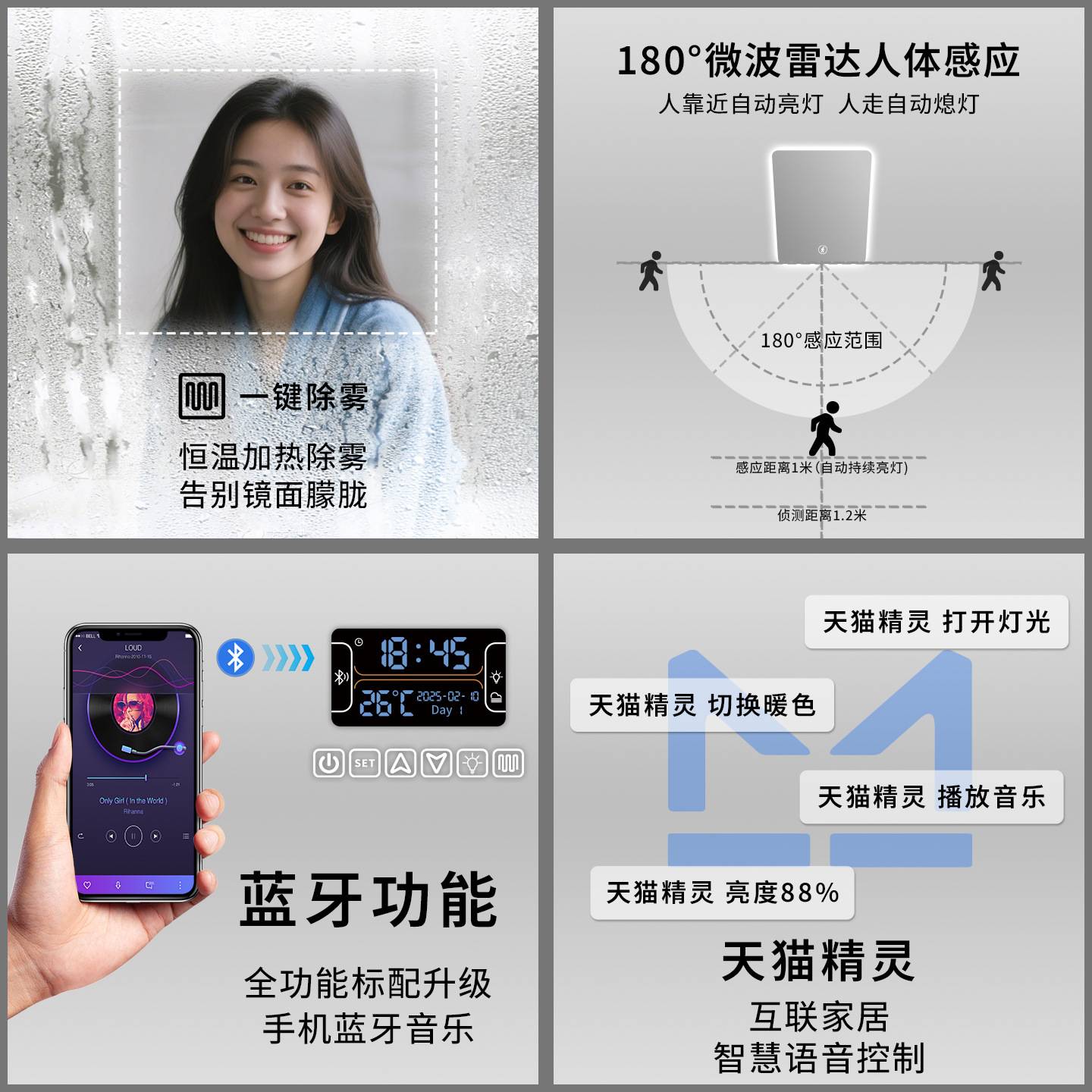 椭圆触摸屏浴室镜子卫生间人体感应LED发光铝合金边框智能化妆镜