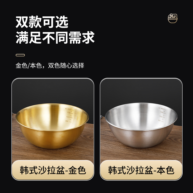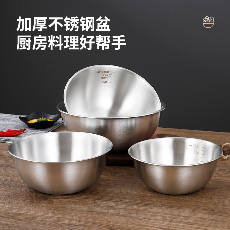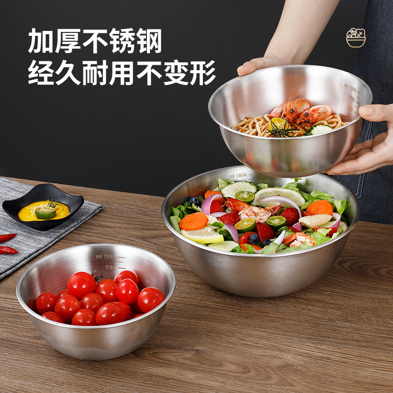 加宽不锈钢料理盆刻度盆加厚搅拌和面盆打蛋盆沙拉碗烘焙工具盆