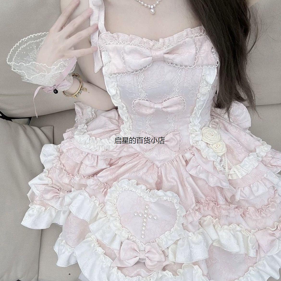 芙蝶之心粉色 芙蝶结原创洋装jsk日常轻lolita公主收腰连衣裙