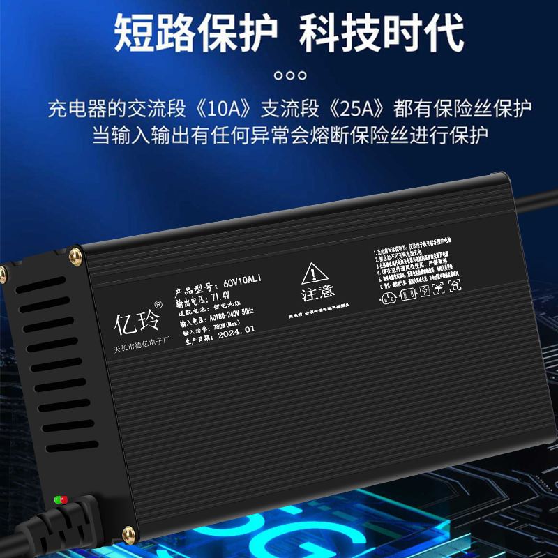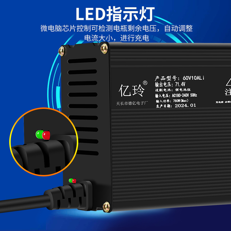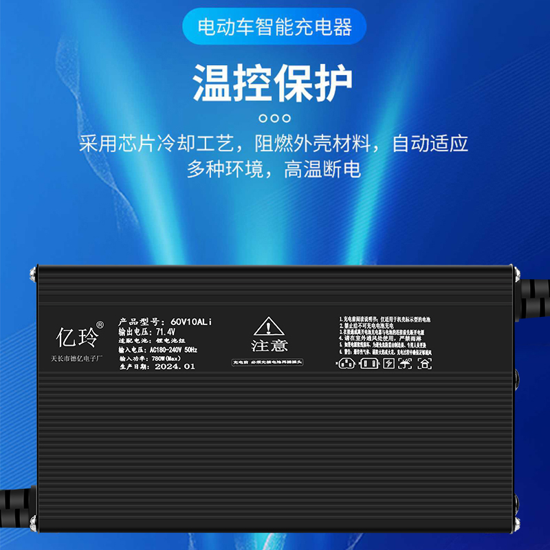 铝壳48V60V72V三元磷酸铁锂电池大功率智能5A6A8A9A10A快充充电器