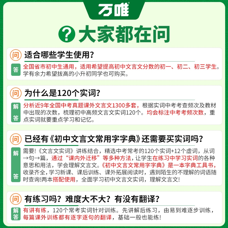 万唯中考初中文言文实词虚词专项训练阅读理解全解七八九年级初一初二资料书2024万维语汉语常用字典词典实汇总字词高频解读完全