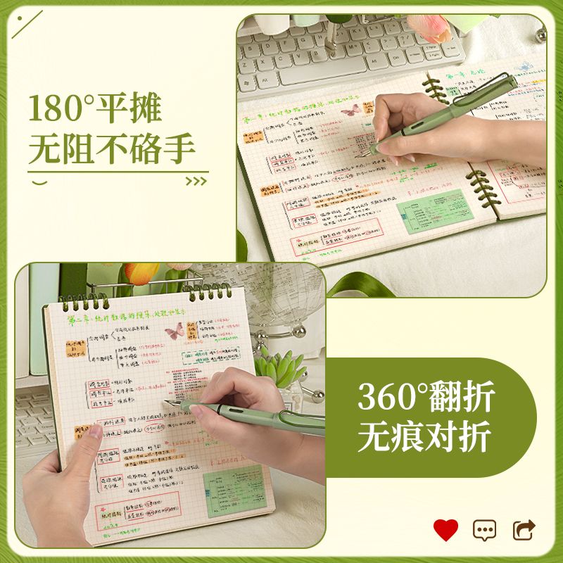 上翻活页笔记本可拆卸方格本网格本子高颜值初中生专用高中格子小方格方形本复古考研加厚2025新款文具草稿纸