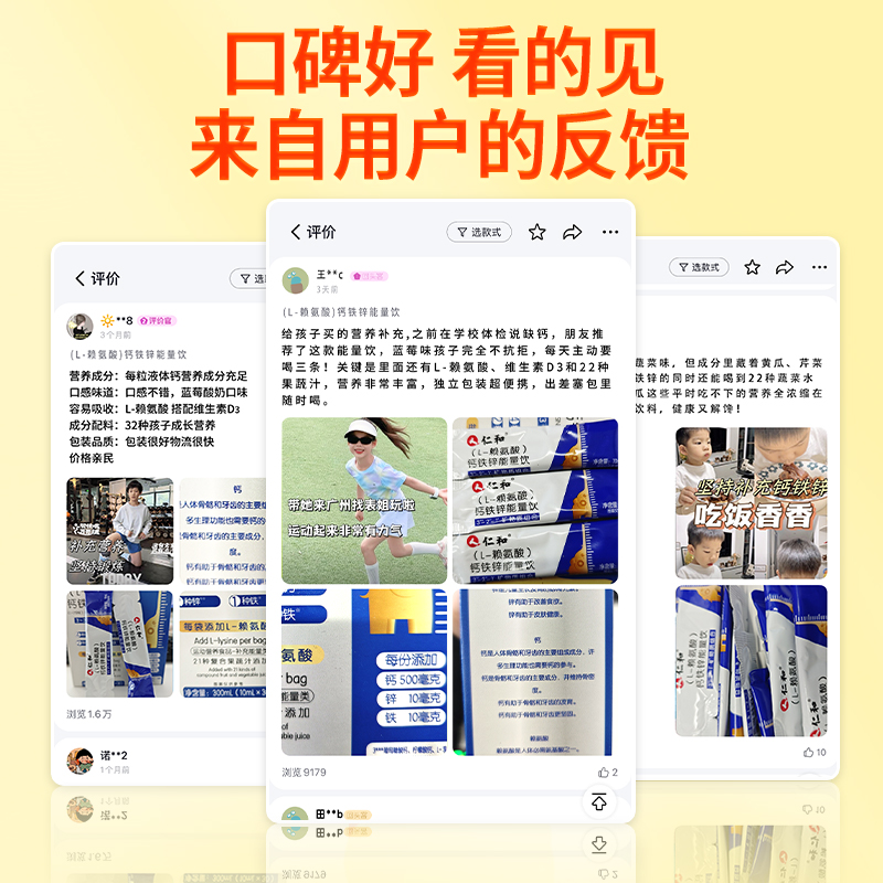 仁和钙铁锌直饮包儿童青少年液体钙成长赖氨酸长高生长素官方正品