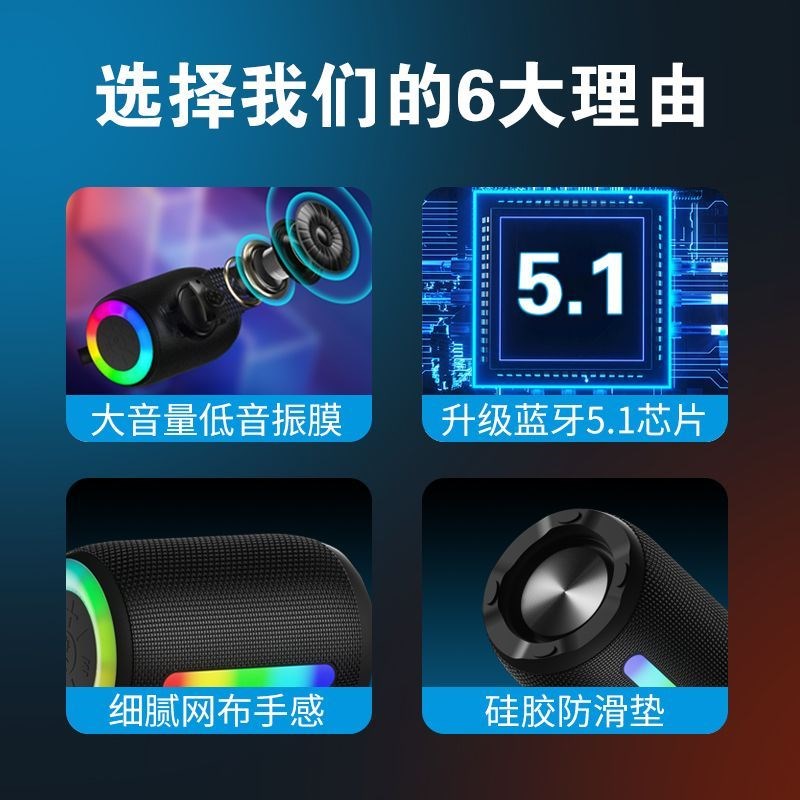 新款20W蓝牙音箱户外骑行可携式炫彩灯光低音炮车载大音量U盘音响