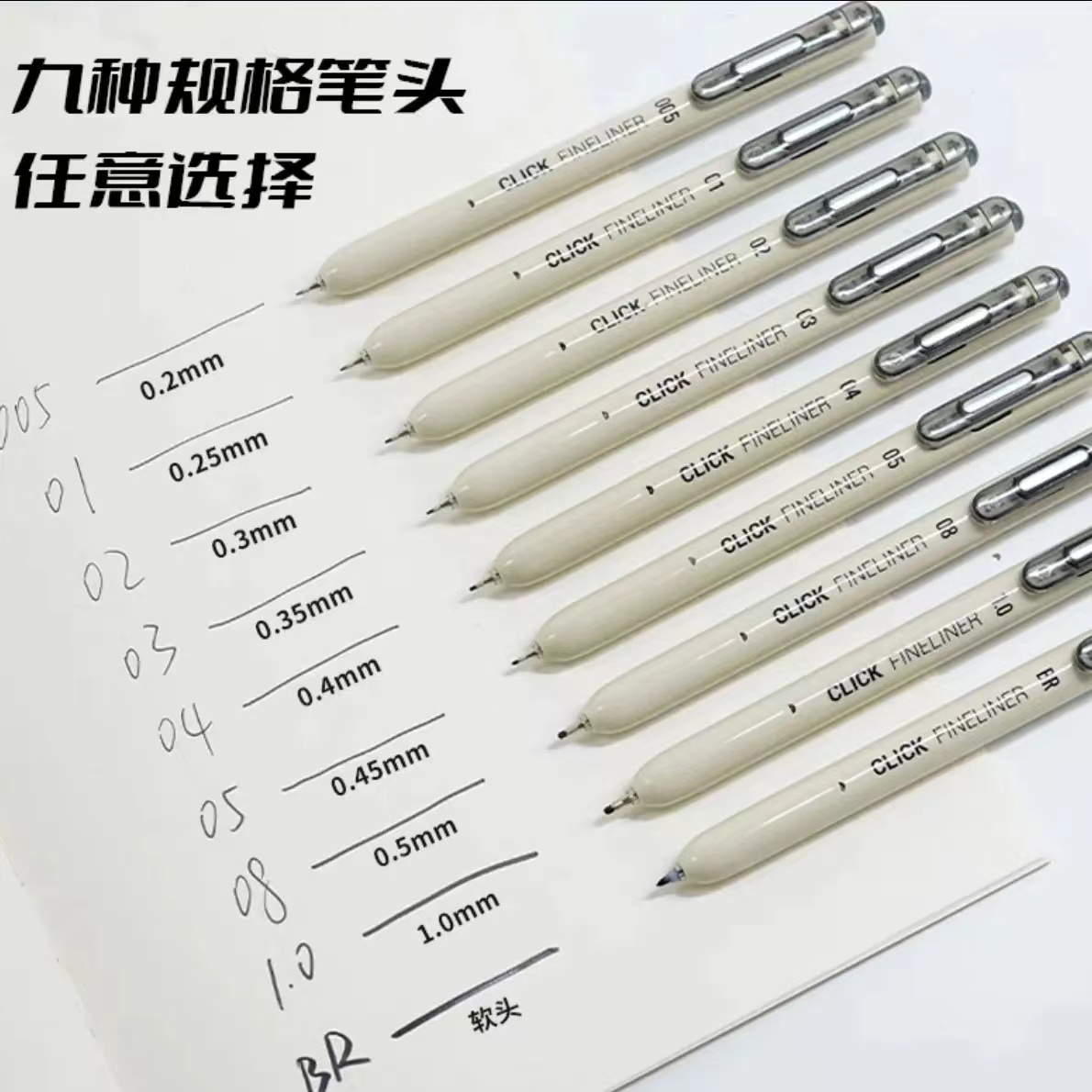 点石按动针管笔美术专用书法练字绘图描边可换替芯防水速干勾线笔