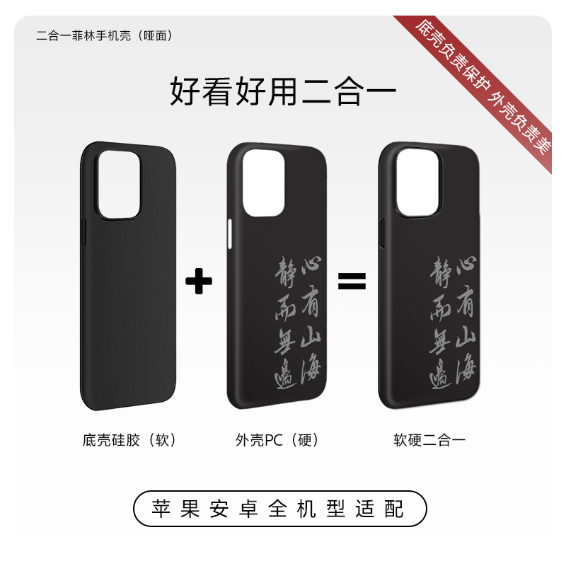 心有山海静而无边 原创书法简约文字黑色手机壳 适用于苹果17iPhone16ProMax华为P70Pro荣耀200小米15