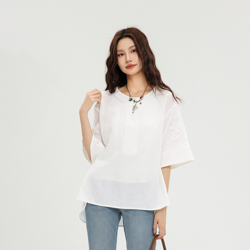 记忆的起点中袖小衫宽松遮肉显瘦衬衫上衣2025夏季新款69AX18118H