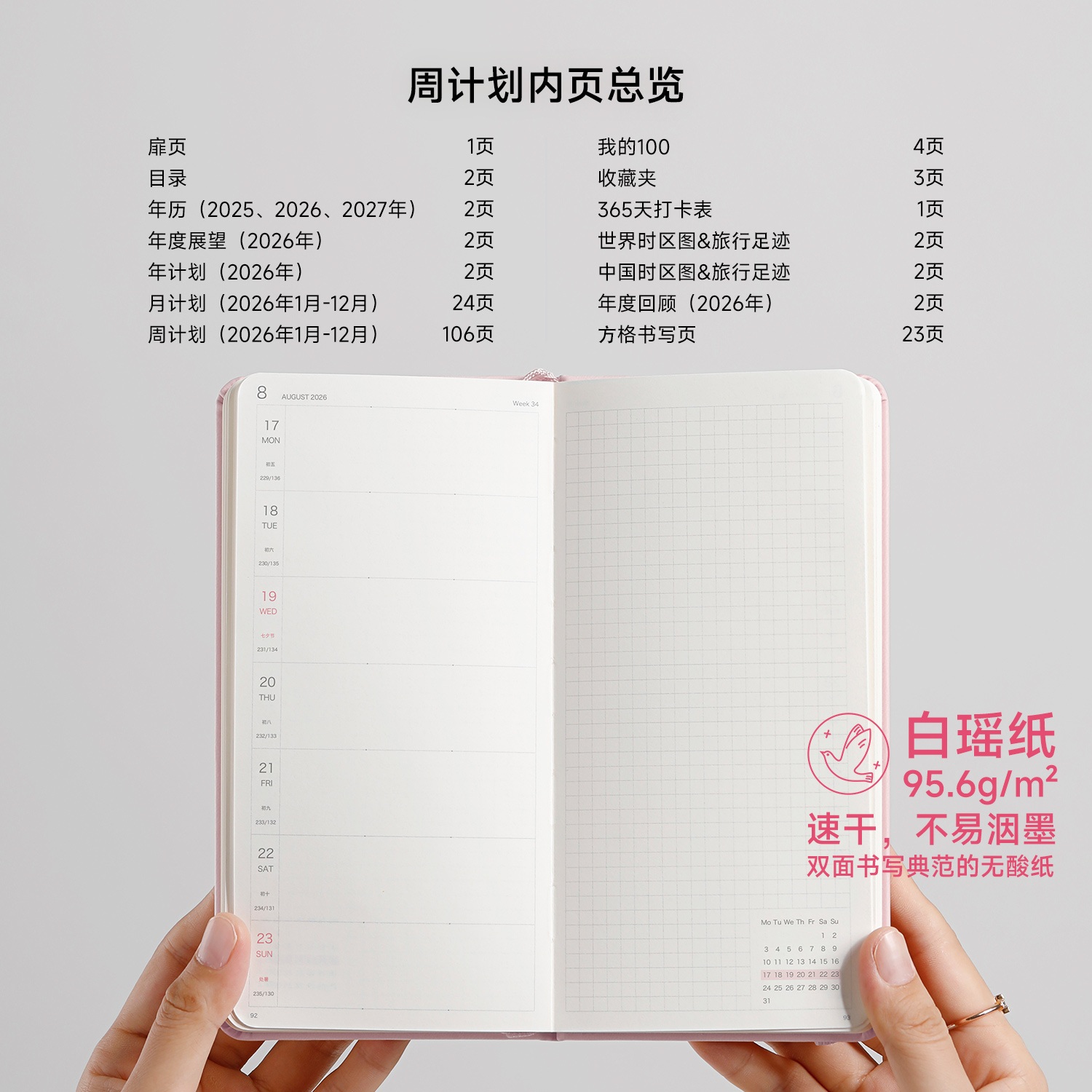 2026非巴川纸weeks手帐本无酸纸PU皮质皮面周计划日程本周历48k小高颜值笔记本简约随身大学生考研记事本定制