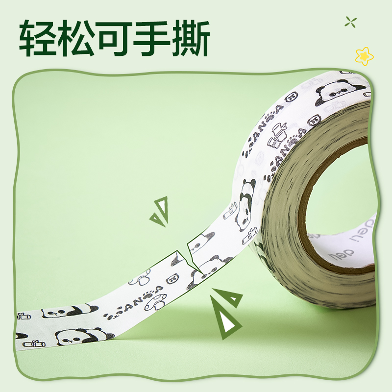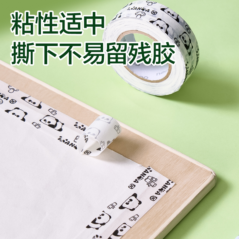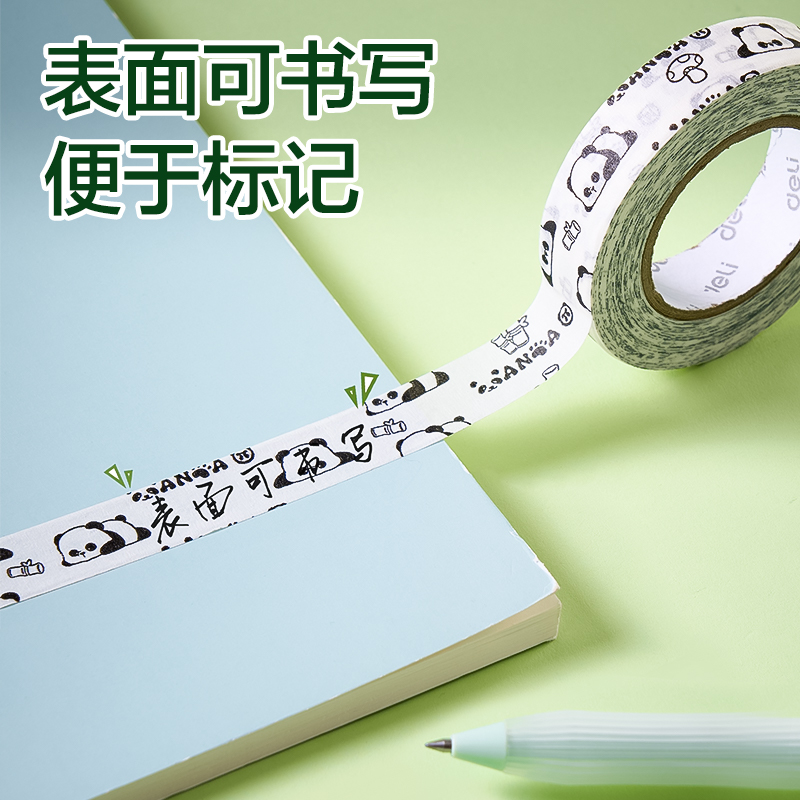 得力熊猫嘟嘟美纹纸胶带萌趣图案无痕美缝纸画画用美纹胶汽车喷漆遮蔽皱纹纸遮挡墙面装修手撕绘画遮盖留白