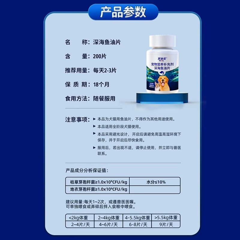 派迪诺鱼油猫咪狗狗专用宠物防掉毛深海鱼油片猫用美毛犬用鱼肝油