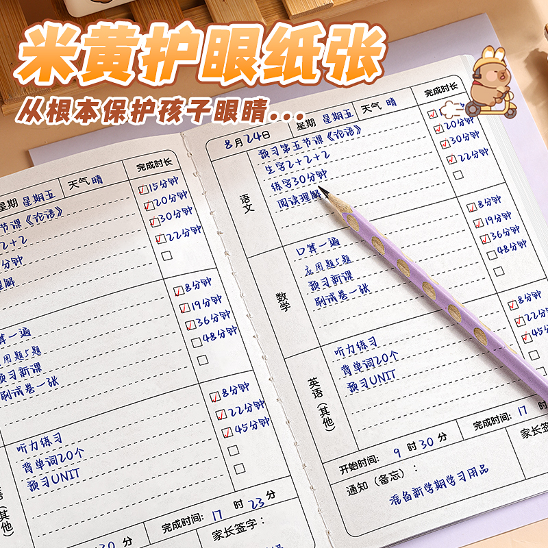 卡皮巴拉作业登记本加厚高颜值小学生专用抄作业本记录本笔记本可爱一年级课堂抄写家校联系家庭记作业小本子