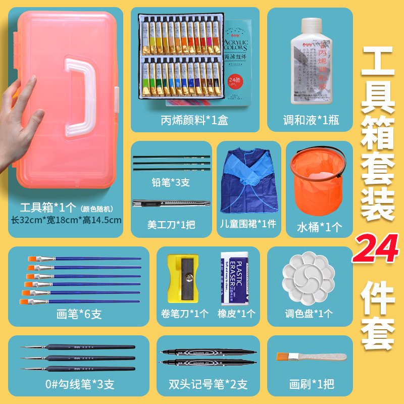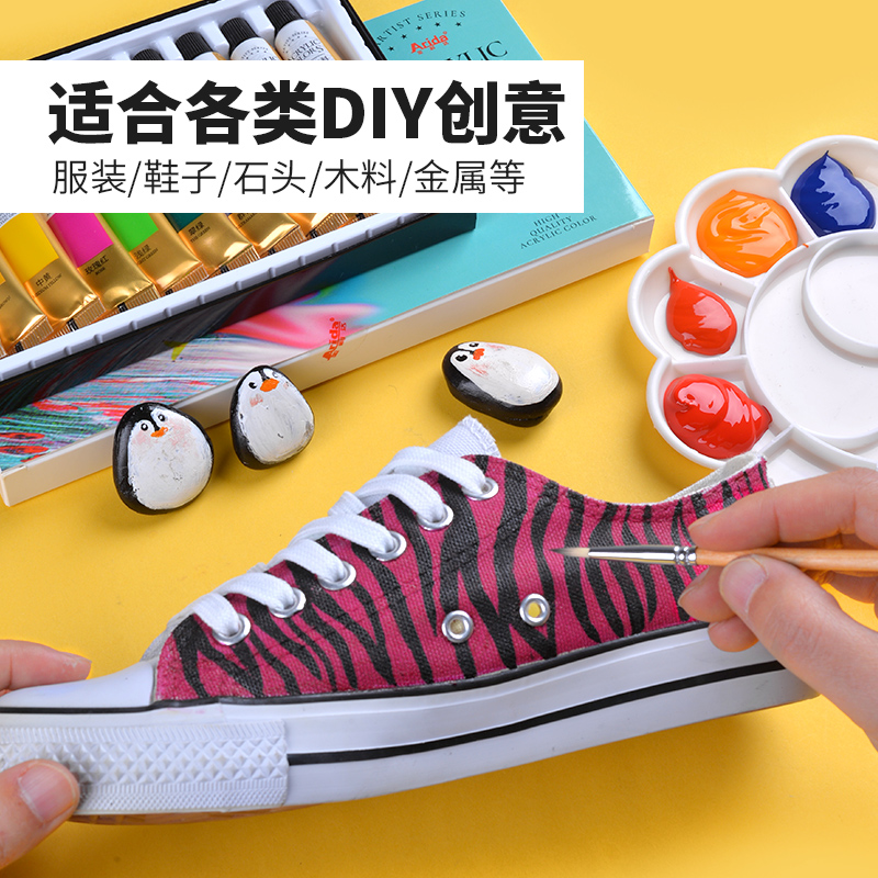 亚利达丙烯画颜料12ml24色diy小盒装颜料衣服鞋子鹅卵石手绘防水不掉色儿童学生初学者12色初学者专用