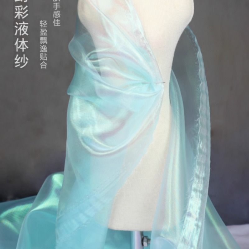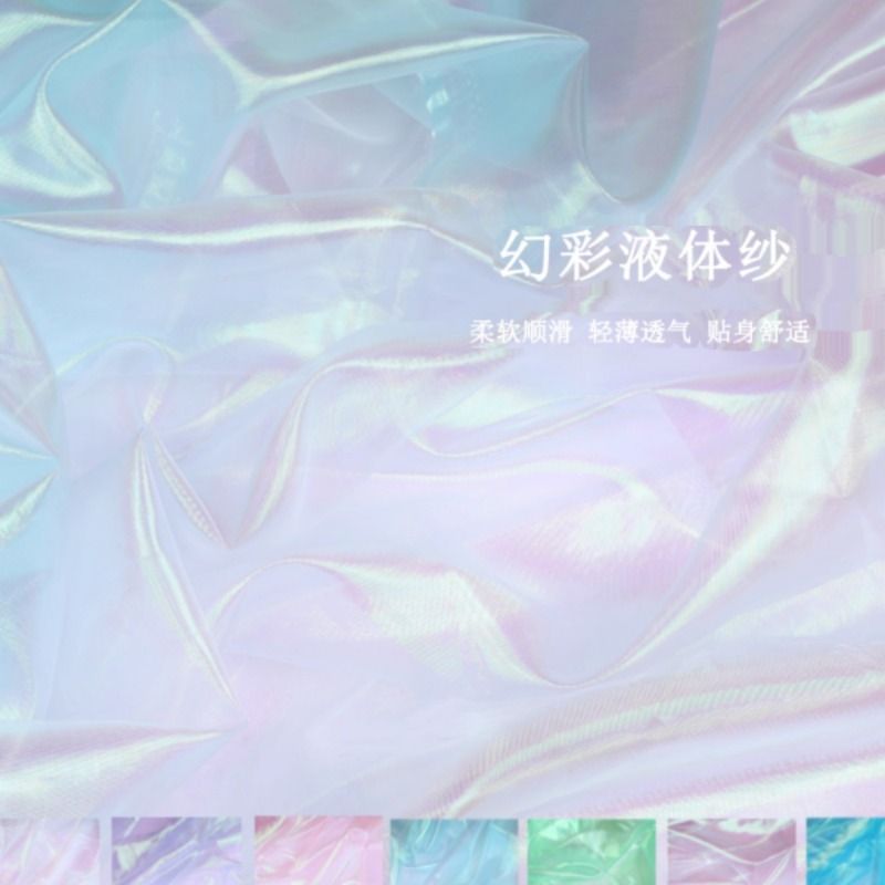 幻彩液体纱透明薄婚纱设计面料柔软丝滑设计师面料连衣裙网纱布料