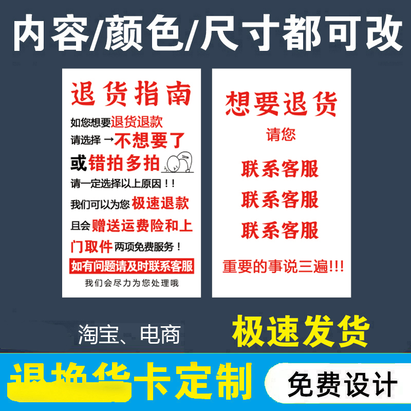电商7天无理由退货服装售后卡淘宝店铺售后卡片定制衣服换货卡片