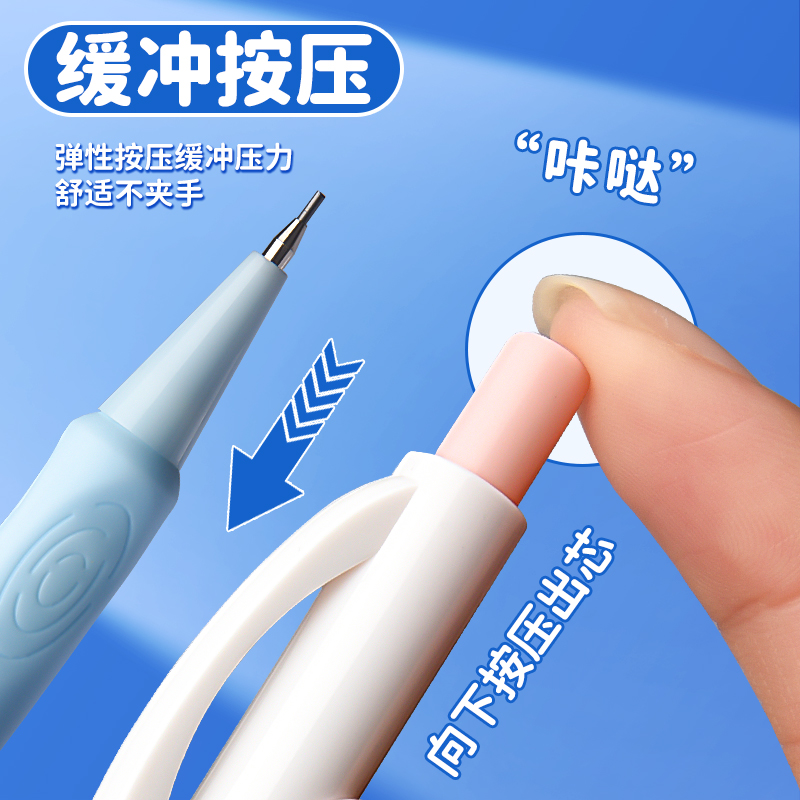 晨光优握自动铅笔小学生专用高颜值0.9mmHB两支装不断芯矫正握笔姿势免削自动笔一年级二年级男女生用文具