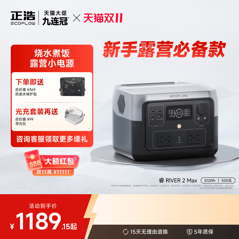 正浩EcoFlow 睿RIVER2Max 便携快充电源 512Wh 磷酸铁锂电芯大功率 户外露营移动电源