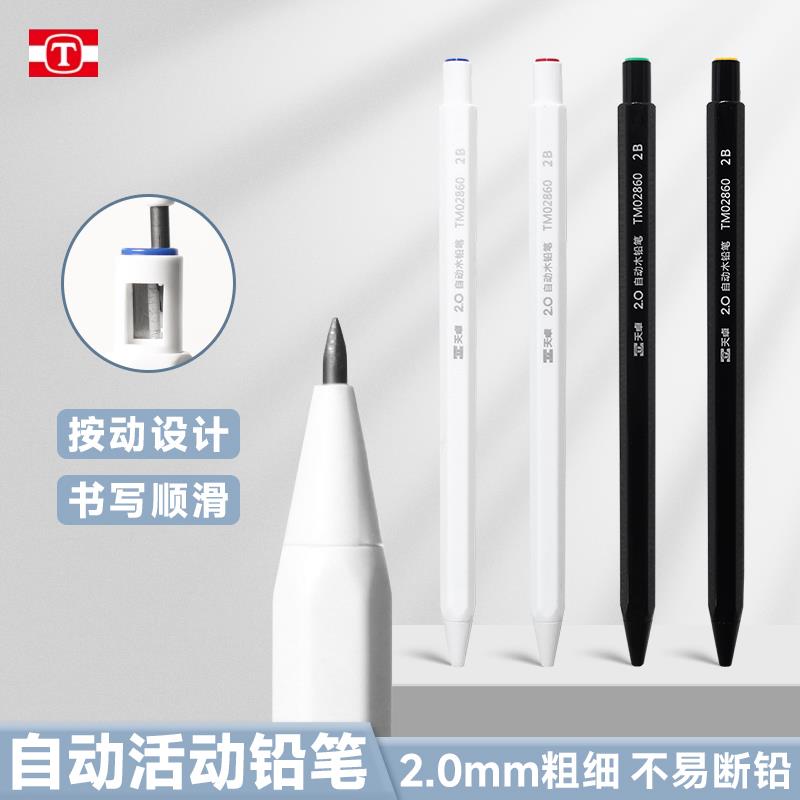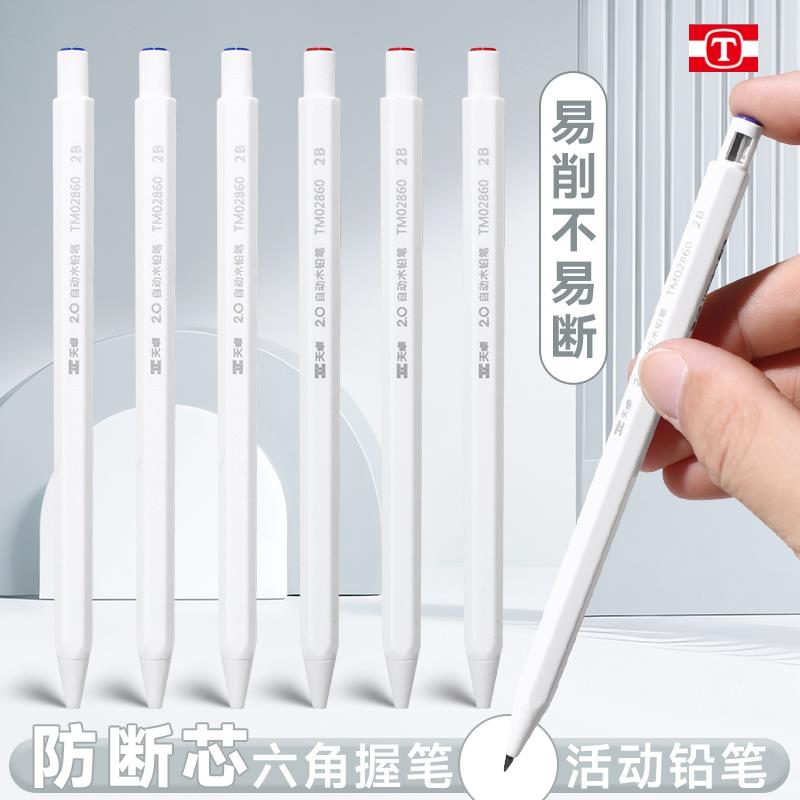 天卓 粗芯仿木铅笔2b六角笔杆2.0按动不易断铅学生自动铅笔免削杆