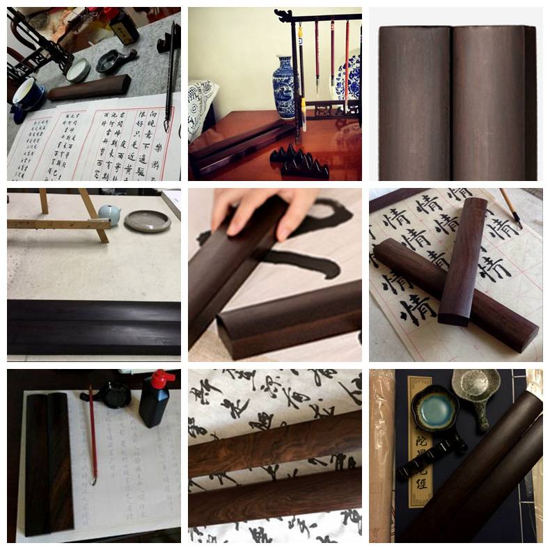 黑檀木大号38cm镇纸镇尺一对实木质压书镇毛笔字压条摆件红木雕刻