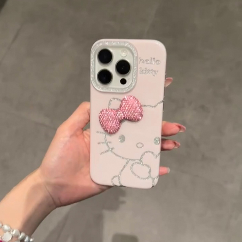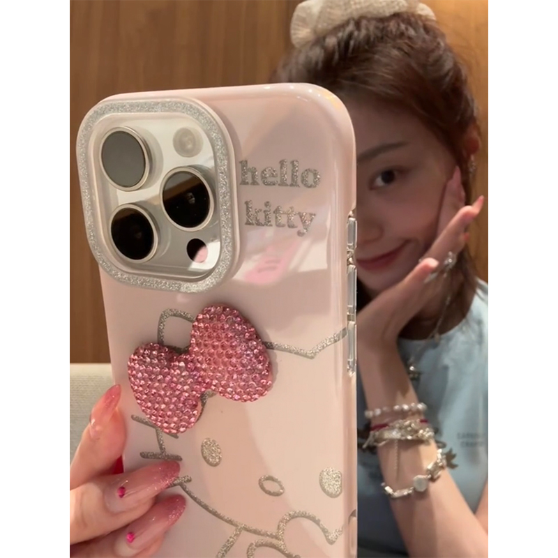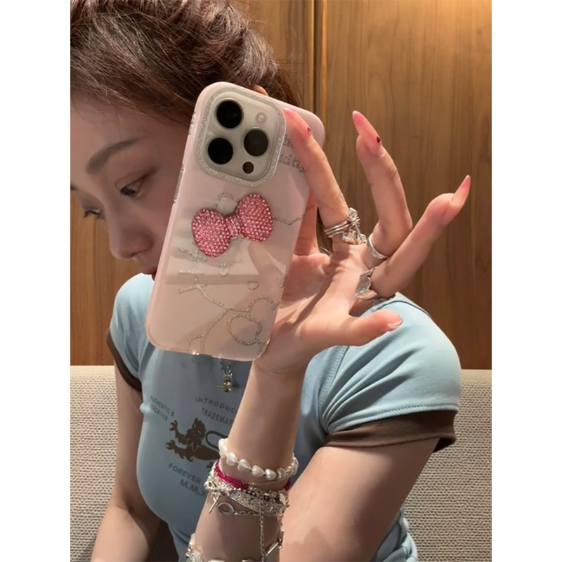 少女粉猫咪满钻蝴蝶结适用苹果16promax手机壳iPhone15女新款14高级感16日系小众13时尚16Pro防摔15pro保护套