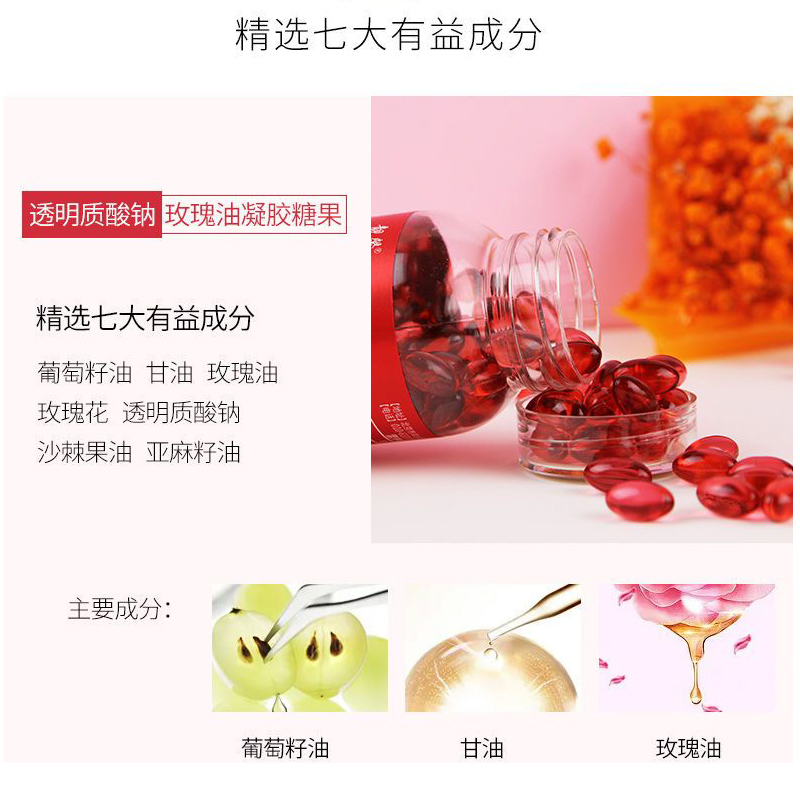 绿健园透明质酸钠玫瑰油胶囊玫瑰凝胶糖果内服外用沙棘女人涂抹