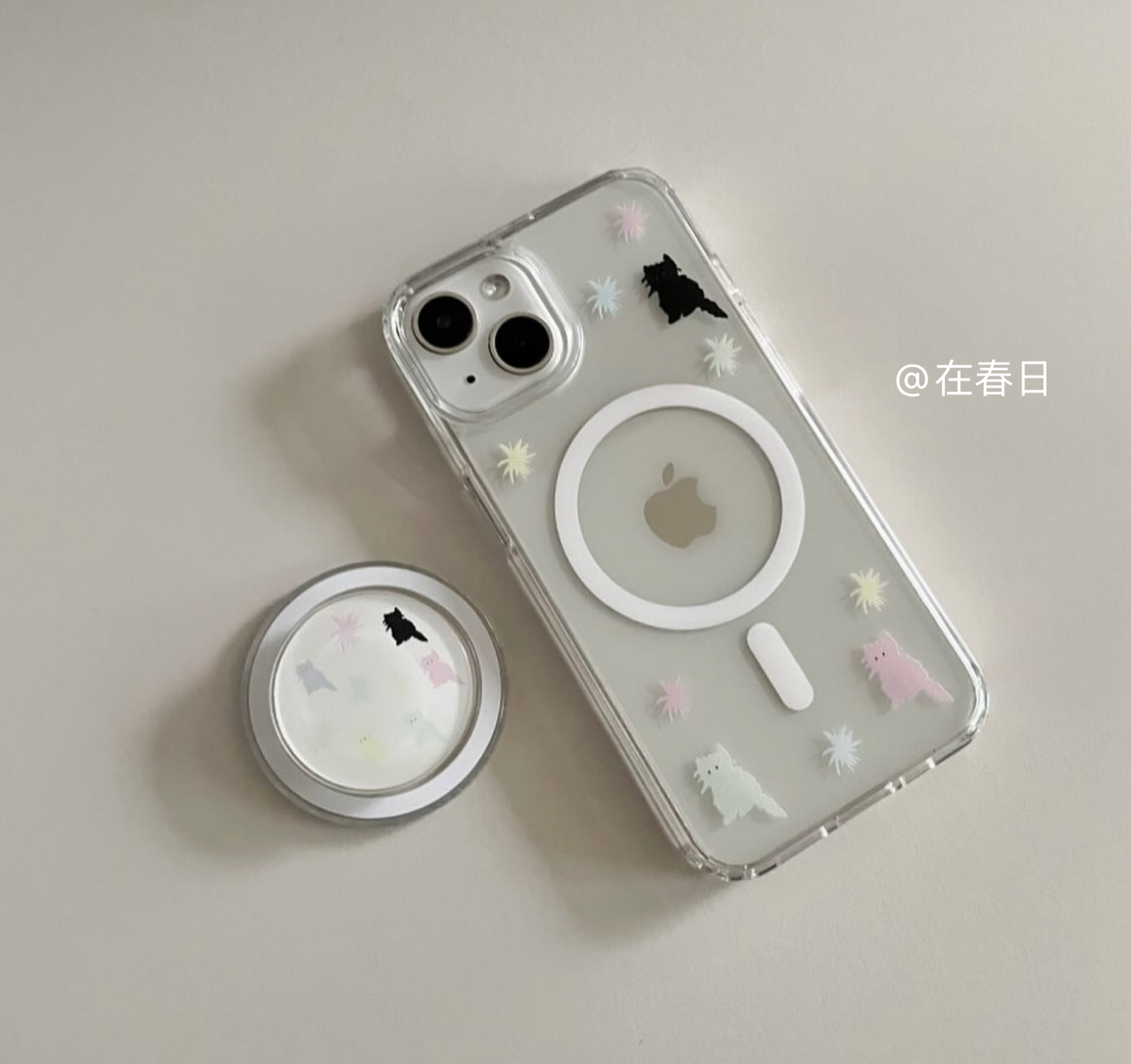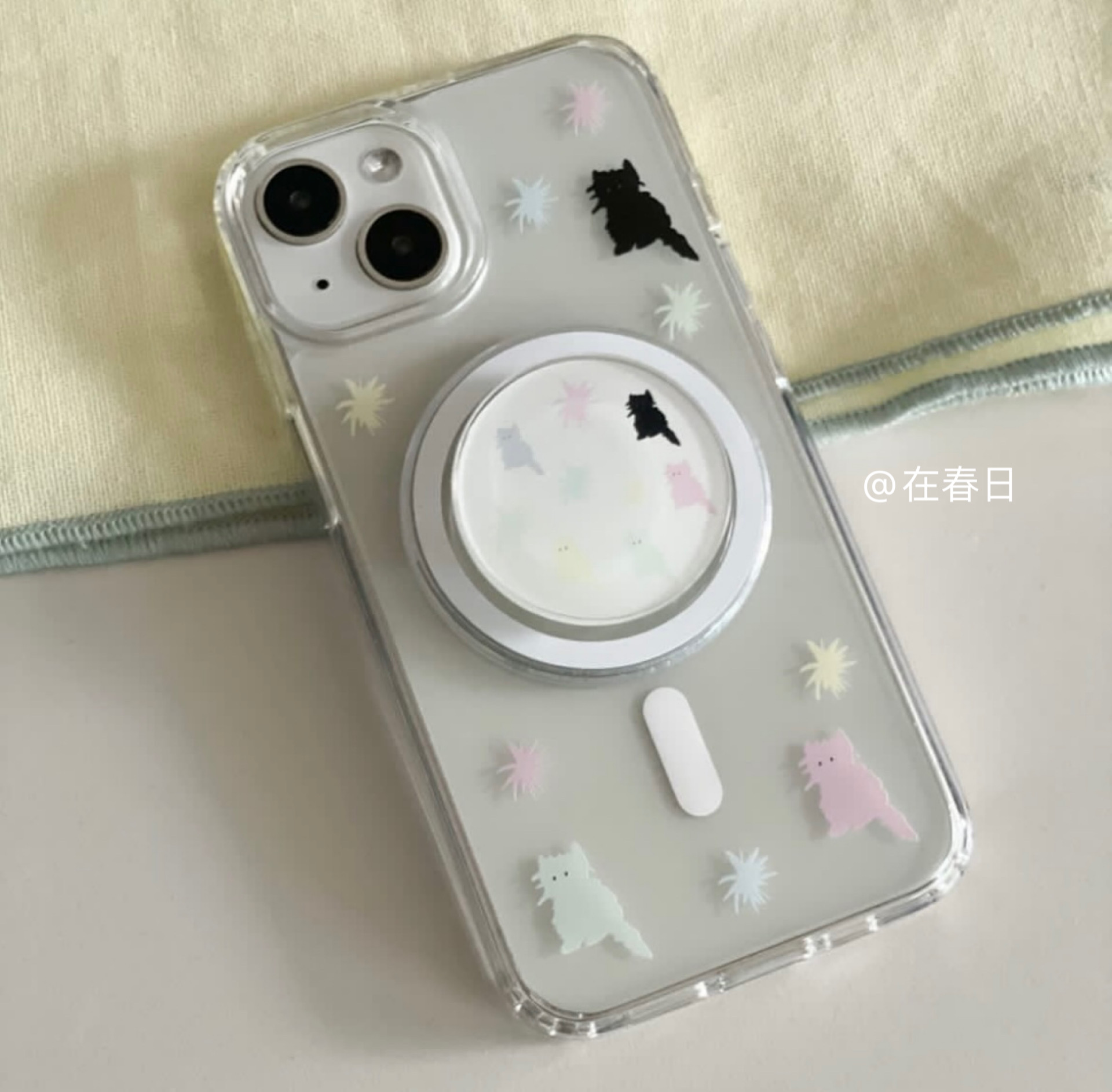 在春日韩国ins小众俏皮彩色猫咪磁吸无线充手机壳适用17promax/14新款iPhone15pro春天16pro手机壳13pro/12
