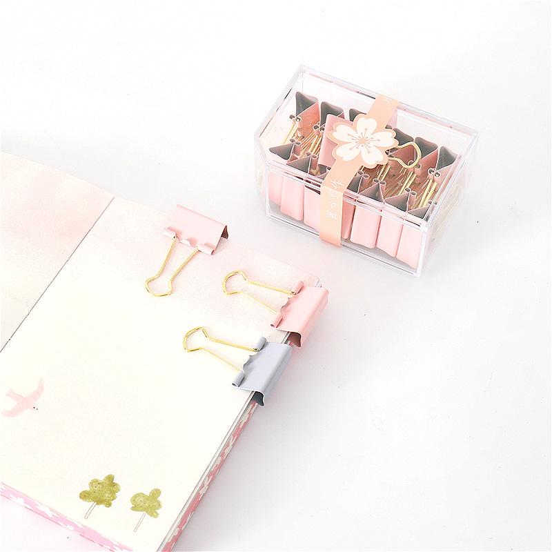 创意唯美小清新长尾夹金色把手票夹中号长尾夹学习办公用品票据夹盒装