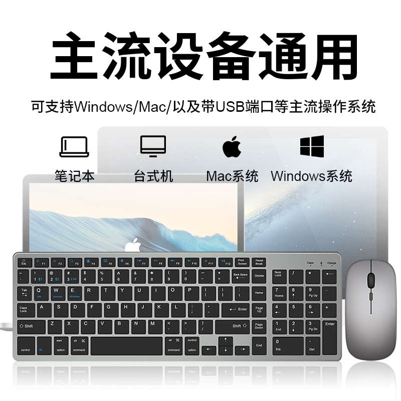 虎克三模蓝牙键盘适用苹果Mac一体机华为笔记本电脑台式鼠标套装