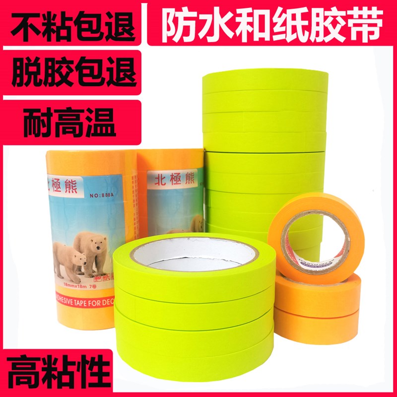 高粘黄色和纸胶带油漆喷漆遮蔽美缝装修外墙真石漆专用绿色分色纸