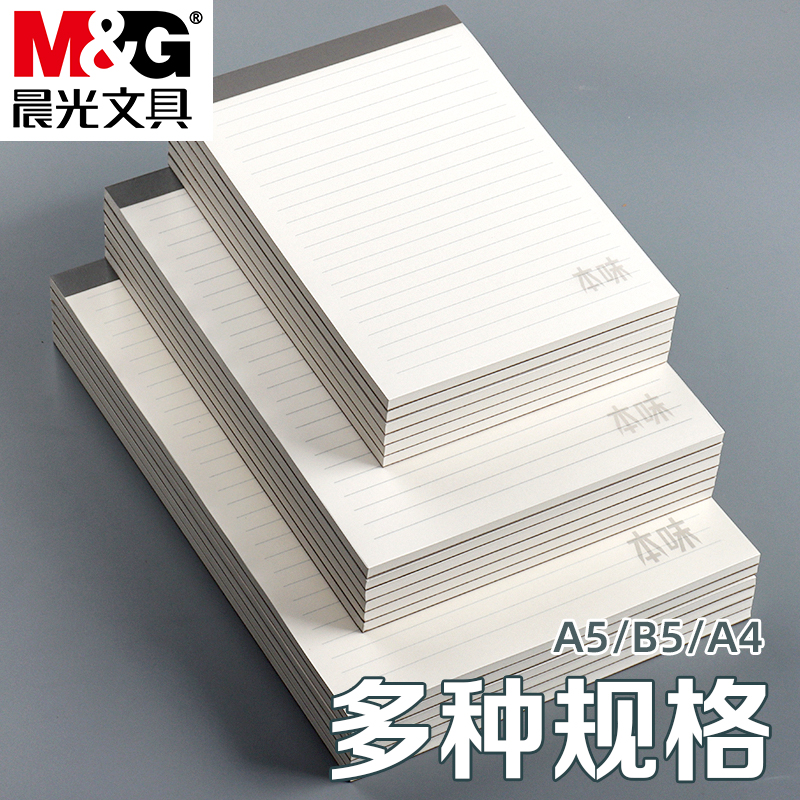 晨光本味横线拍纸本B5学生用可撕拍纸本PP封面简约草稿本A4笔记本横线本加厚笔记本子A5上翻便签本记事本