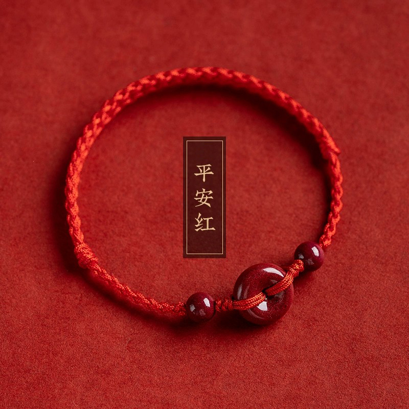 朱砂平安扣手链女本命年天然红绳手工编织手绳手串脚链礼物好运