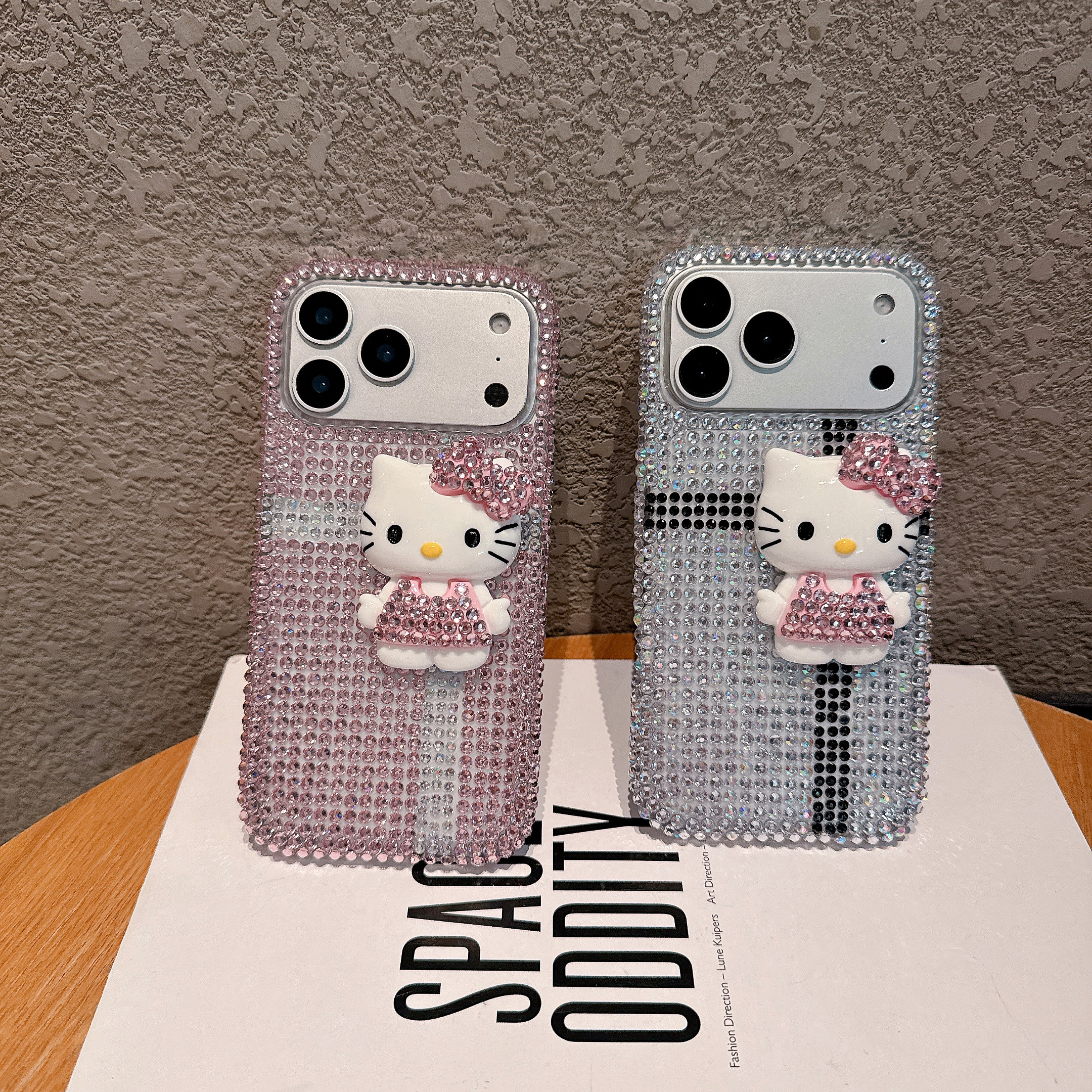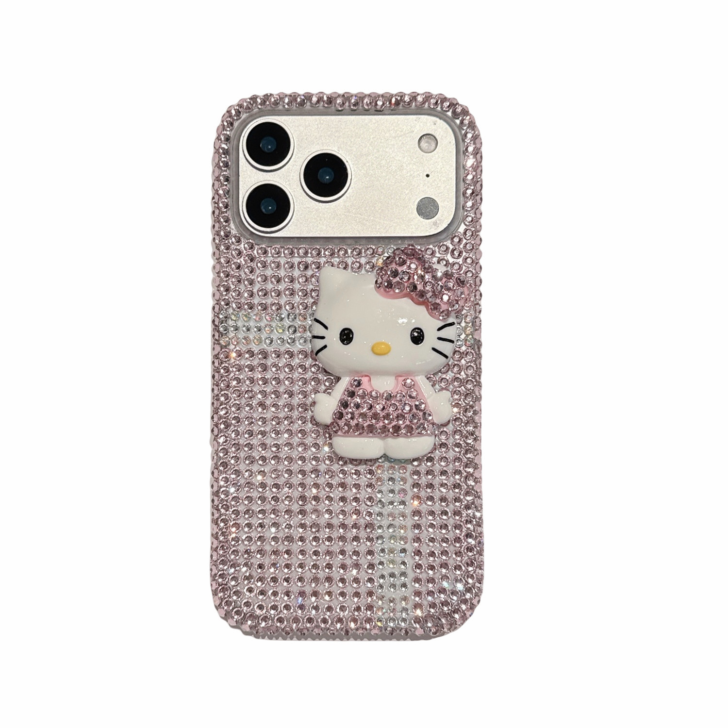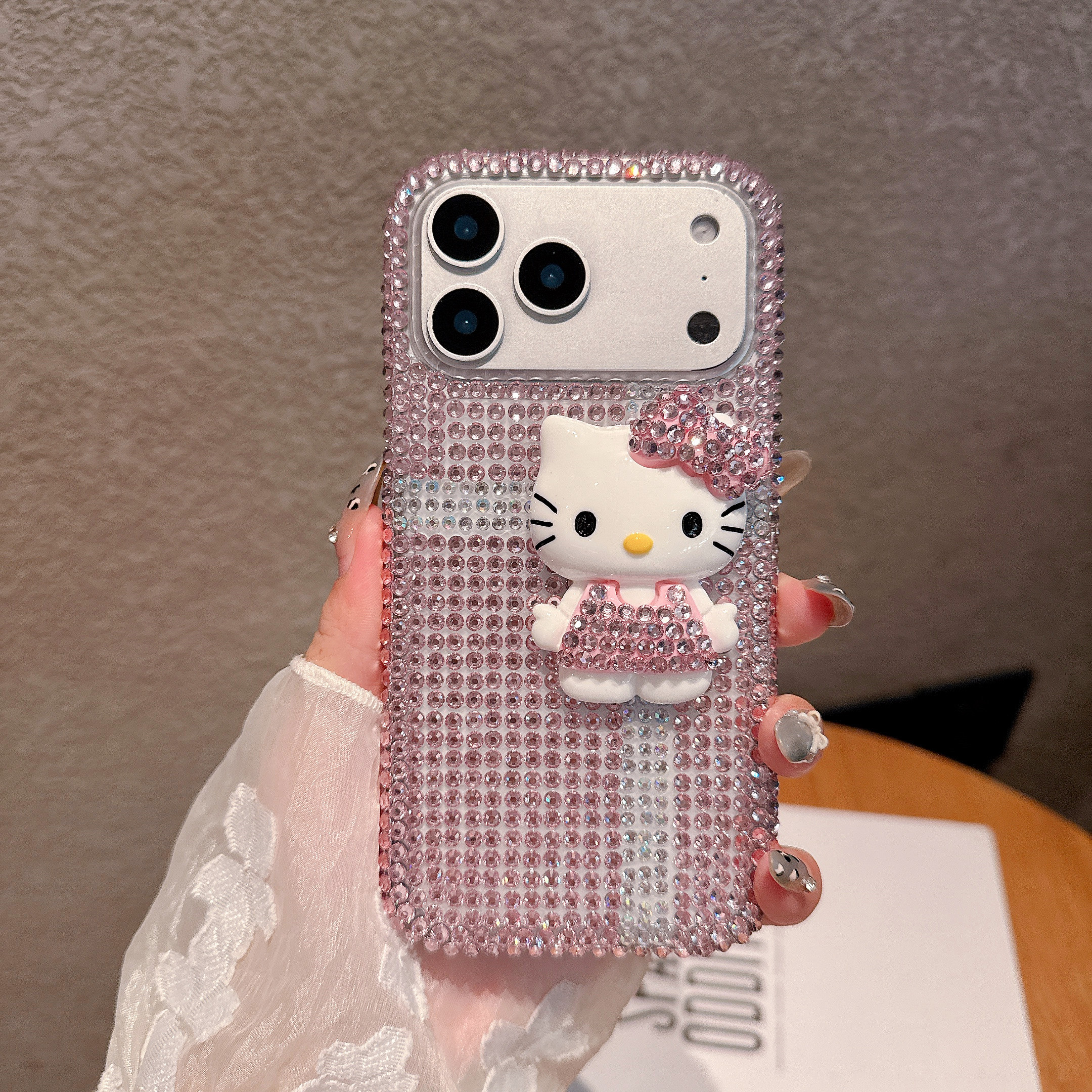 淳于亦ins风粉色满钻凯蒂猫适用苹果17promax手机壳15pro大视窗镶钻KT猫14/13创意可爱立体蝴蝶结样式6保护套