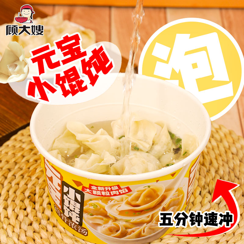 顾大嫂小馄饨宿舍吃的零食夜宵早餐方便速食懒人食品即食混沌桶装
