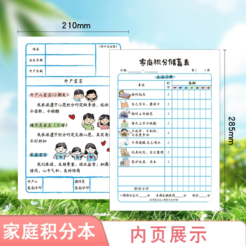 我的家庭积分本家用学习生活劳动奖罚规则表节假日孩子生活好习惯养成打卡本积分卡兑换表儿童积分奖励记录本