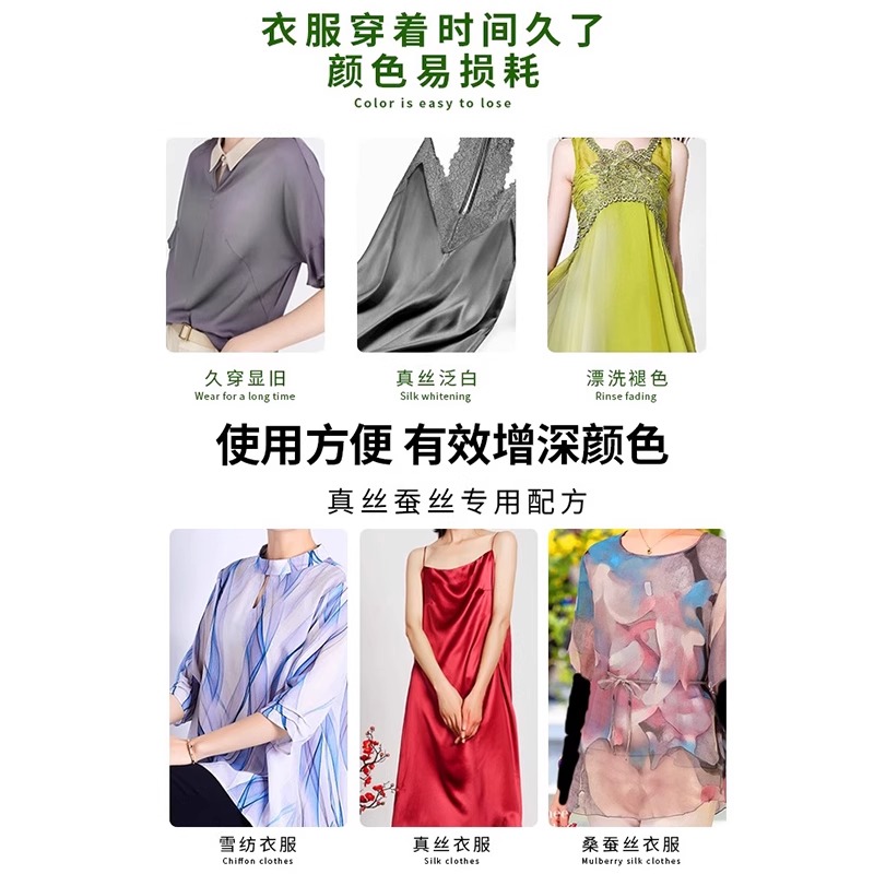 真丝增艳剂桑蚕丝衣服衣物发白恢复褪色颜色修复色翻新还原增色剂