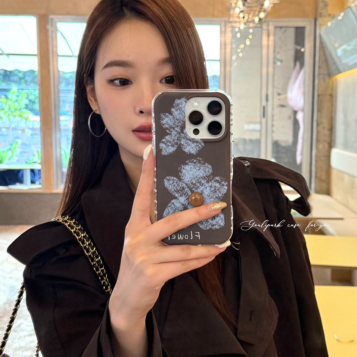 由里公园ins韩系秋冬小众美拉德涂鸦花朵17适用17pro苹果17ProMax手机壳iPhone16全包14新款16Promax保护套女