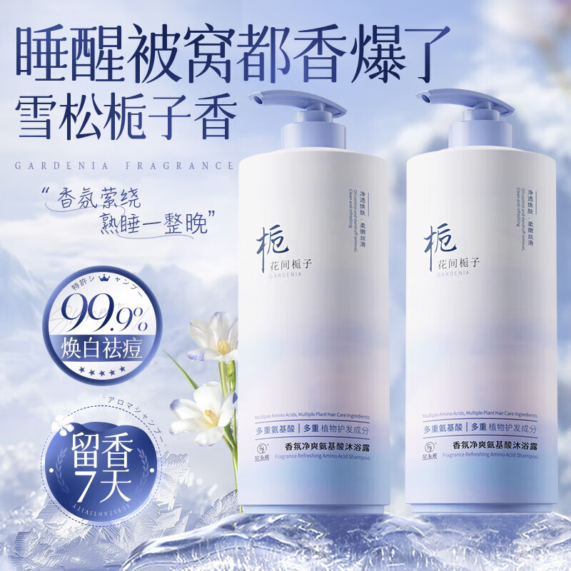 栀子花沐浴露持久留香72小时香水型女男士除螨祛痘液乳洗发水套装