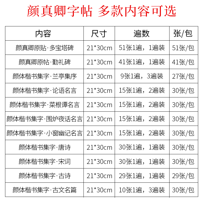 颜体多宝塔碑楷书集字 228首唐诗道德经兰亭集序小窗幽记中楷临摹毛笔字帖 初学者学生书法入门软笔描红宣纸