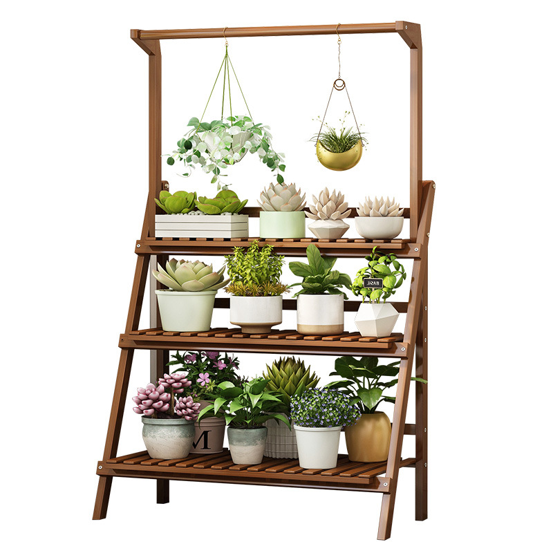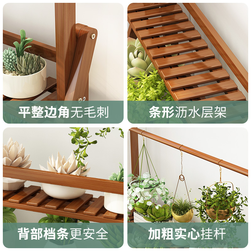花架实木质客厅落地式置物阳台室外多肉花店新中式窗台摆件花盆架
