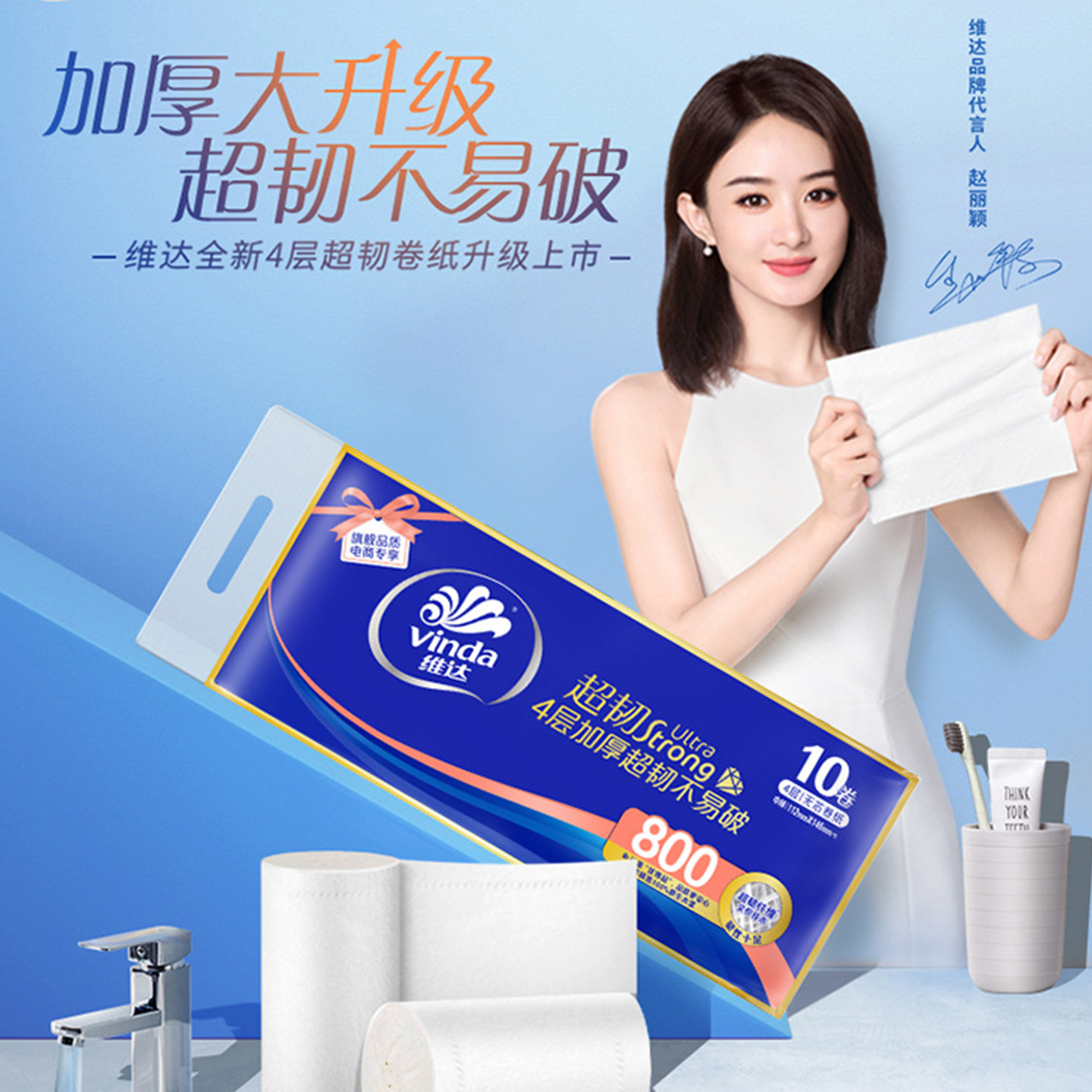 【孙颖莎推荐】维达卷纸蓝色经典卫生纸巾四层家庭装有芯卷纸厕所