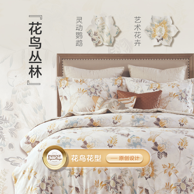 Harbor House纯棉四件套全棉四季通用贡缎轻奢印花全棉床品Parrot